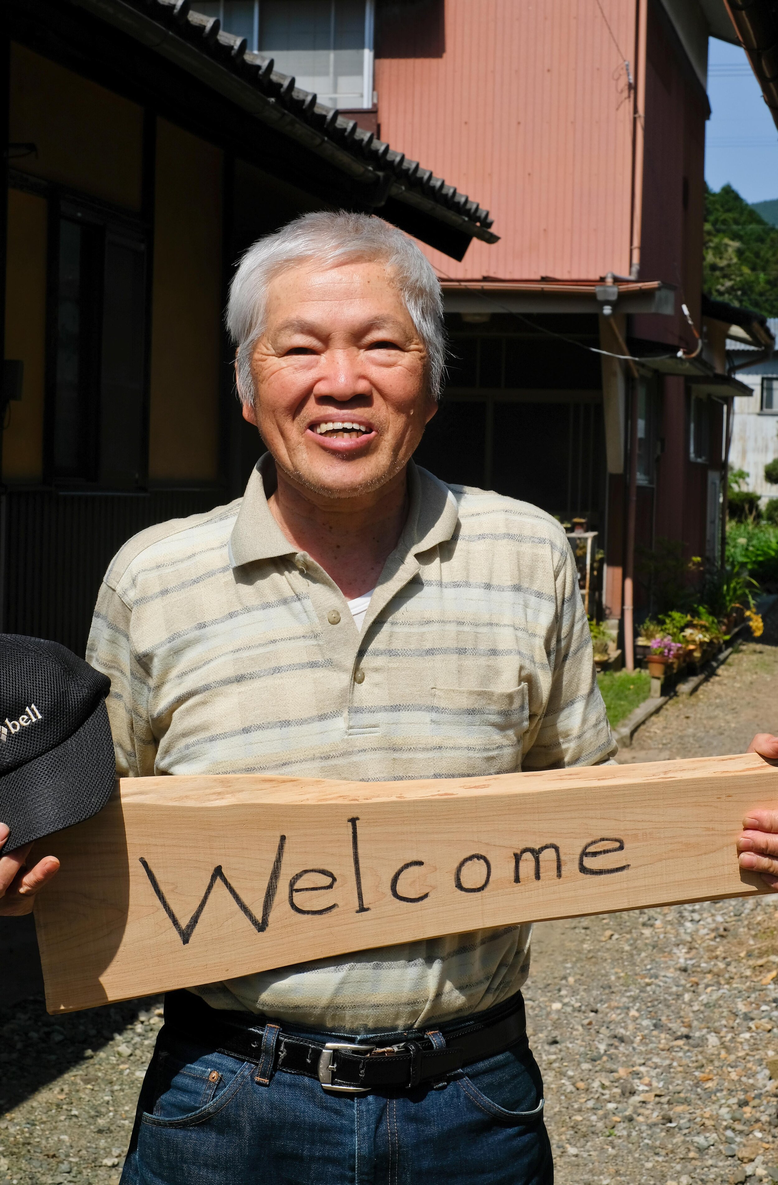 The senior population of Japan has always impressed me. They are active, involved, spirited and healthy. Walking through a small village this morning we saw an elderly lady in her late 80’s. Hunched over, she pushed her chair cart down the street with vigor. Her shuffling pace had purpose. Watching her move down the narrow street a jovial “hello” interrupted my thoughts. A very enthusiastic grey-haired gentleman came out of his car to greet us. The usual Doko Kara Kimashita Ka? (where are you from) and many other questions ensued. We answered best we could, but we must have misunderstood his final question. When we replied Yes, he took off and disappeared behind his garage, emerging seconds later with a folding chair.